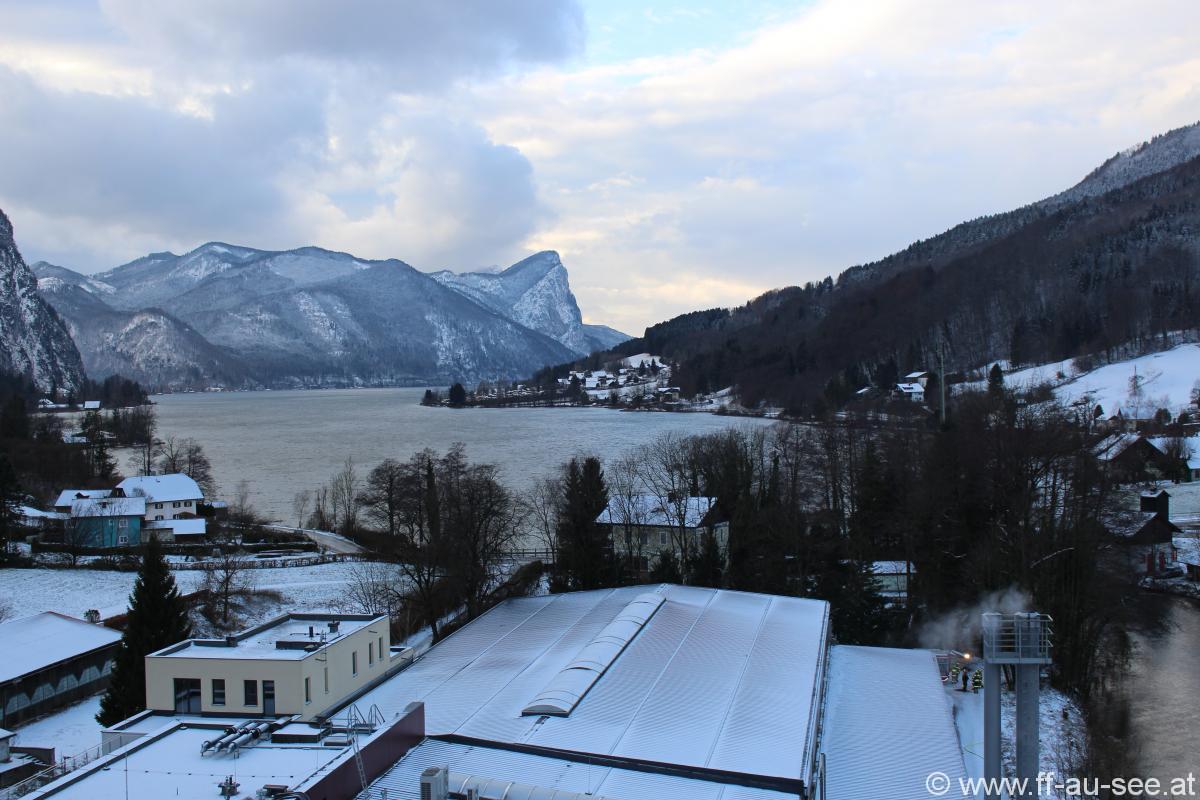Der AS-Trupp begann daraufhin mit der Personensuche und konnte nach kurzer Zeit bereits die 1. Person retten, die AS Trupps aus Unterach und Abersee übernahmen dann wechselweise ebenfalls die Personensuche. Über die Drehleiter St. Gilgen konnten vom Dach des Firmengebäudes 2 weitere Personen gerettet und an den Rettungsdienst übergeben werden. Im Zuge der Suche wurden auch 2 Behältnisse mit Gefahrgut aus dem Gebäude verbracht.
